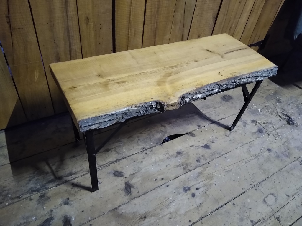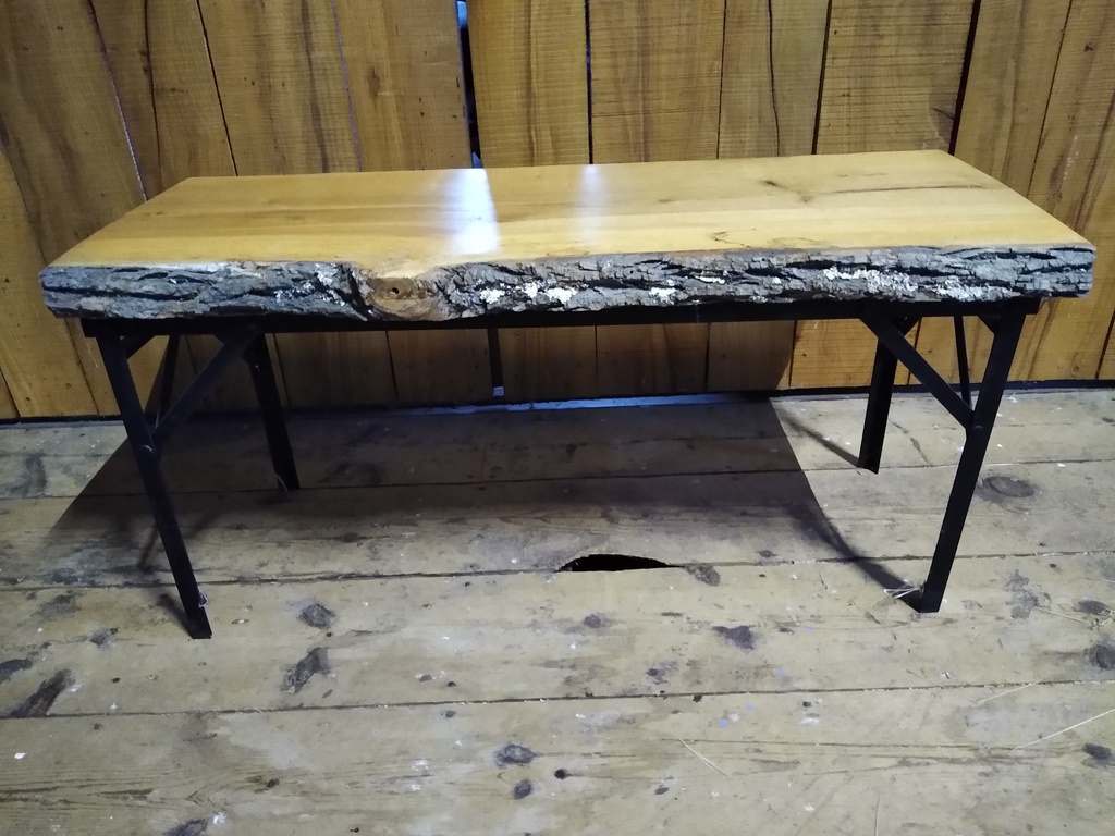 Finished Wood Bench with Steel Base 16″ wide 22″ high 41″ long